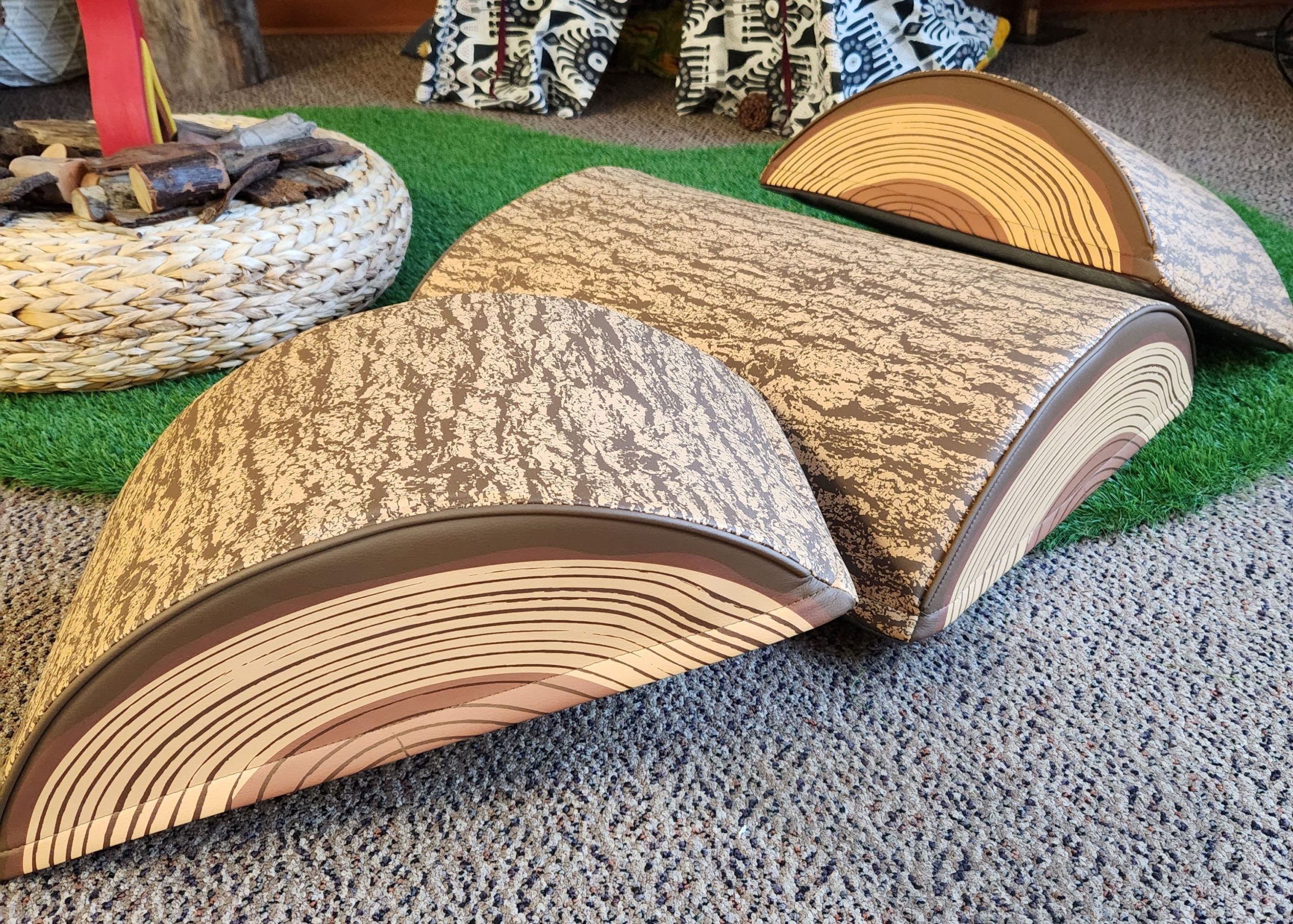 Bring a little nature indoors with this three piece climber set. Sturdy foam on the inside is strong enough for balancing and climbing, while the vinyl cover is an ascetically pleasing log patterned cover.